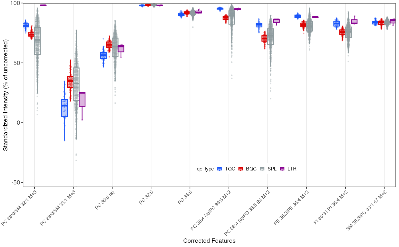 #> ℹ The following features were flagged as potential annotation outliers: DG 18:1_20:0 [-18:1], DG 14:1_20:0 [-20:0], PC 32:1, PC 32:2, SM 40:1, SM 39:1, SM 36:2, SM 36:2 d9 (ISTD), SM 38:3|PC 33:1 d7 M+2, TG O-51:2 [-18:1]